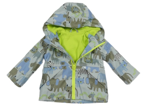 Světlešedá nepromokavá jarní bunda se zvířátky a kapucí St. Bernard