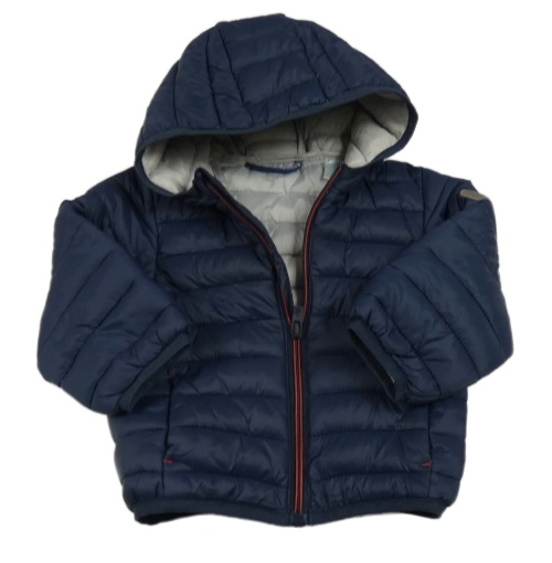 Tmavomodrá šusťáková prošívaná zateplená bunda s kapucí