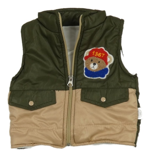 Khaki-béžová šusťáková zateplená vesta s medvědem