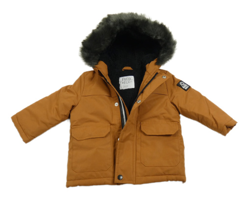 Hnědá šusťáková zimní bunda s nášivkou a kapucí s kožešinou F&F