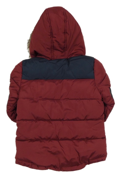 Vínovo-tmavomodrá šusťáková zimní bunda s kapucí s kožešinou Dunnes Stores