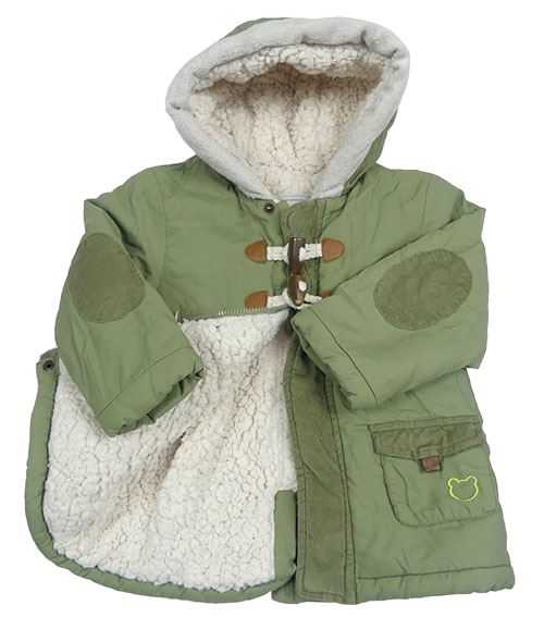 Světlekhaki šusťáková zimní parka s kapucí