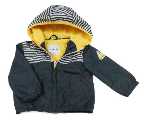 Šedo-pruhovaná šusťáková jarní bunda s kapucí