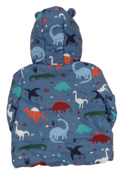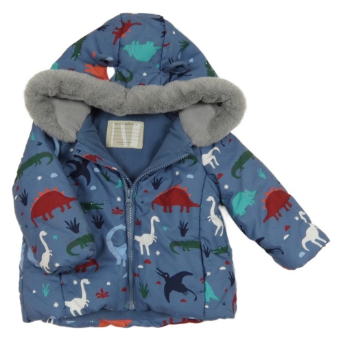 Modrá šusťáková zimní bunda s dinosaury a kapucí John Lewis
