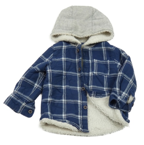 Tmavomodro-bílo-šedá kostkovaná zateplená košilová bunda s kapucí F&F