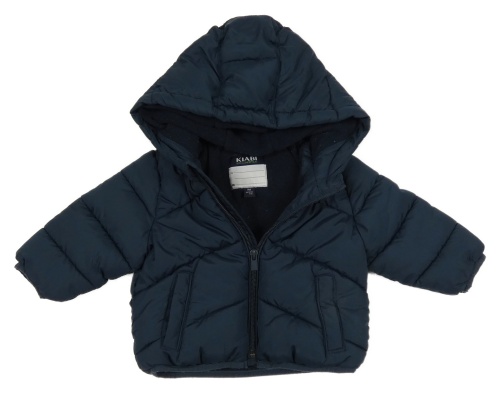 Tmavomodrá prošívaná šusťáková zimní bunda s kapucí KIABI