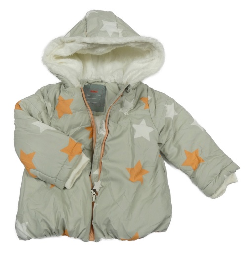 Světlešedá šusťáková zimní bunda s hvězdami a kapucí Kanz