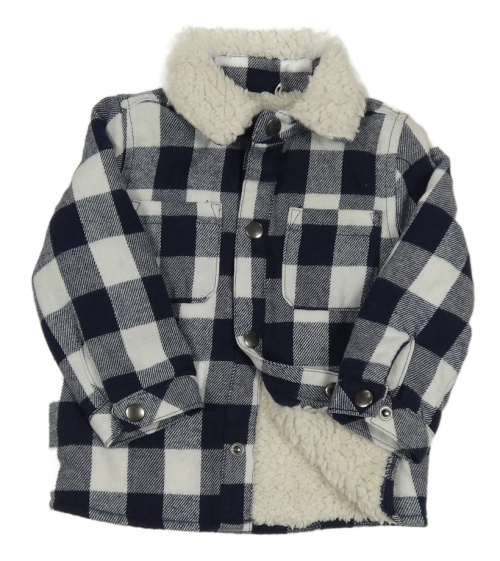 Tmavomodro-bílá kostkovaná zateplená košilová bunda Tu