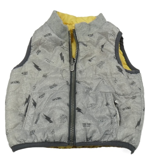 Šedá melírovaná prošívaná šusťáková zateplená oboustranná vesta s obrázky IKKS