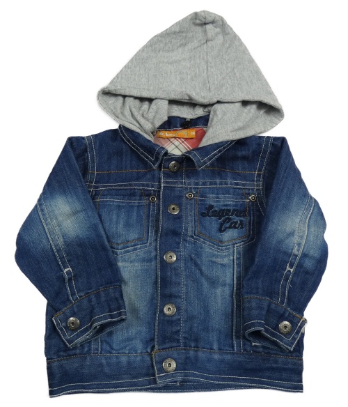 Modrá riflová bunda s nápisy a odepínací kapucí MC. baby