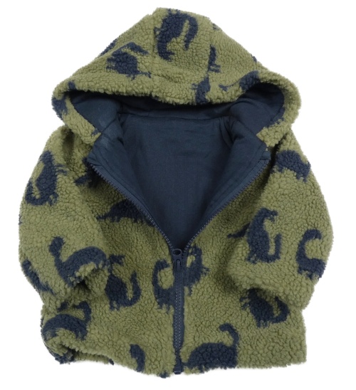 Khaki huňatá podšitá bunda s dinosaury a kapucí St. Bernard