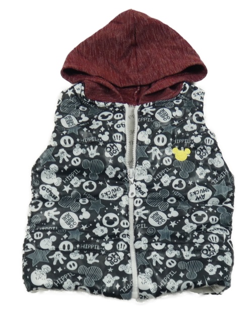 Černá šusťáková zateplená vesta s Mickey Mousem a kapucí
