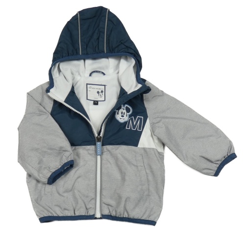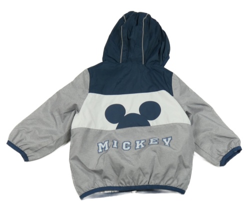 Světlešedo-petrolejovo-bílá šusťáková jarní bunda s Mickeym C&A