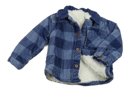 Modro-tmavomodrá kostkovaná manšestrová zateplená košilová bunda Tu