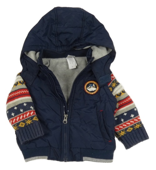 Tmavomodrá šusťáková lehce zateplená bunda s pletenými rukávy a kapucí C&A