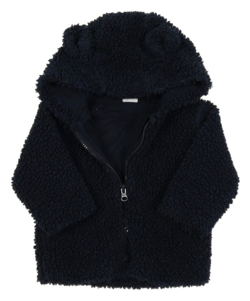Tmavomodrá huňatá podšitá bunda s kapucí s oušky F&F