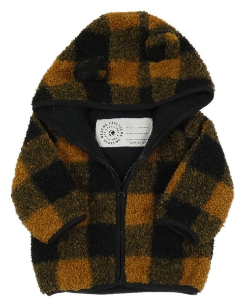 Hnědo-khaki-černá kostkovaná huňatá zateplená bunda s kapucí s oušky George