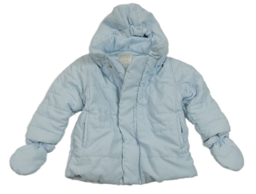 Světlemodrá šusťáková zimní bunda s odepínací kapucí + rukavice Emile et Rose