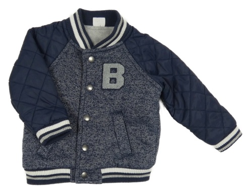 Tmavomodrá melírovaná baseballová zateplená bunda se šusťákovými rukávy a písmenem F&F
