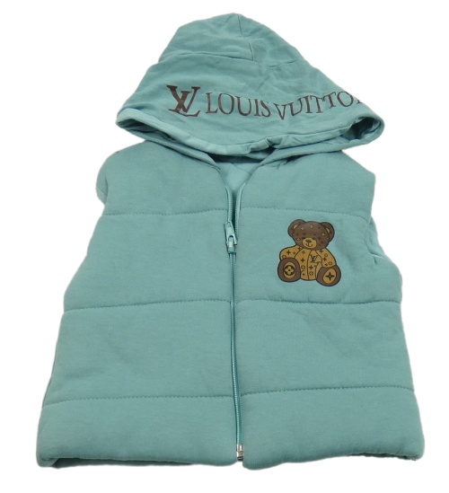 Zelená tepláková zateplená vesta s medvídkem a kapucí