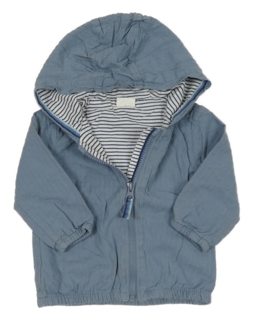 Modrošedá pruhovaná plátěná jarní bunda s kapucí Next