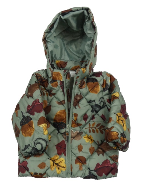 Khaki šusťáková prošívaná zateplená bunda se zvířátky a kapucí H&M