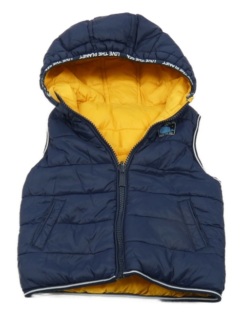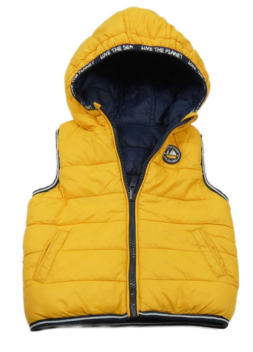 Tmavomodrá šusťáková prošívaná zateplená oboustranná vesta s kapucí