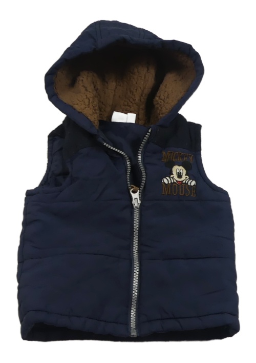 Tmavomodrá šusťáková zateplená vesta s Mickeym a kapucí Disney