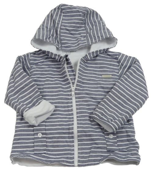 Modro-bílá pruhovaná podzimní bundička s kapucí