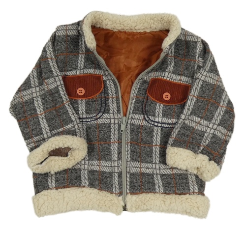 Tmavošedo-bílo-hnědá kostkovaná podšitá bunda