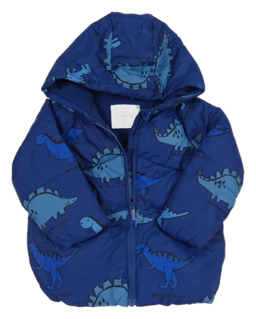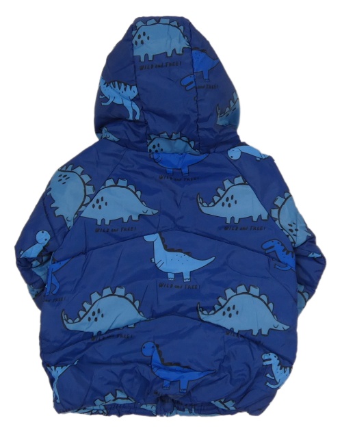 Tmavomodrá šusťáková zimní bunda s dinosaury a kapucí Primark