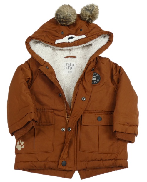 Hnědá šusťáková zimní bunda s nášivkou a kapucí s bambulemi F&F