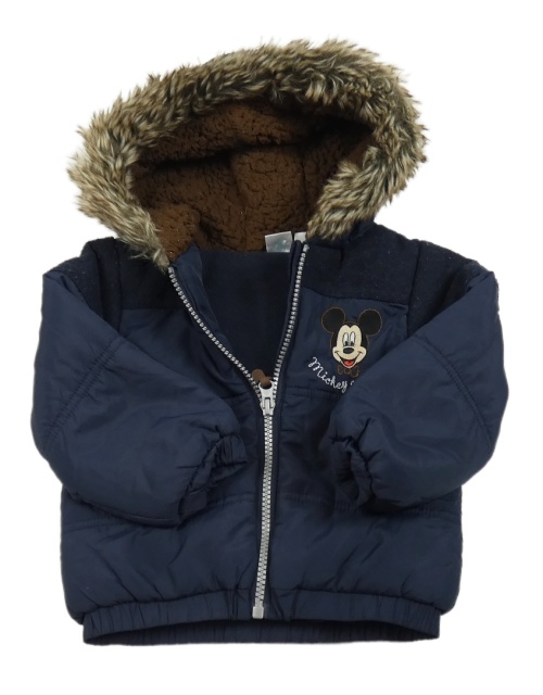 Tmavomodrá šusťáková zimní bunda s Mickeym a kapucí s kožešinou Disney