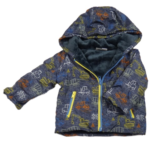 Tmavomodrá šusťáková zimní bunda s auty a kapucí Mick Mack