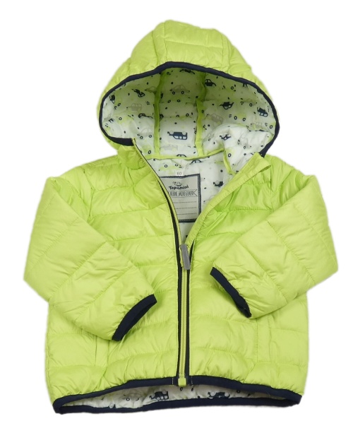 Neonově zelená šusťáková prošívaná zateplená bunda s kapucí Topomini