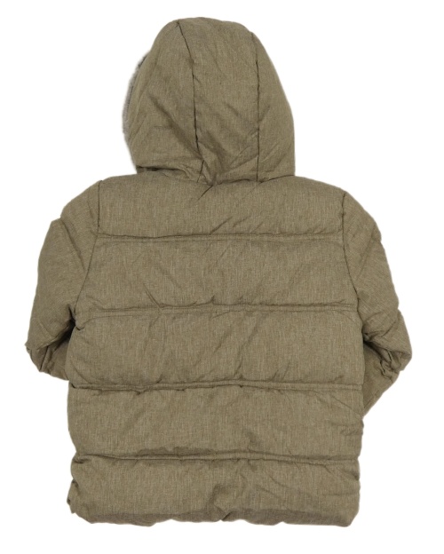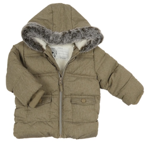 Kávová melírovaná prošívaná šusťáková zimní bunda s kapucí s kožešinou George