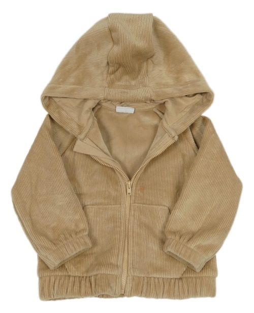 Béžová žebrovaná sametová propínací mikina s kapucí F&F