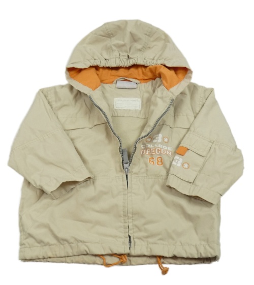 Béžová plátěná podzimní bunda s nápisem a kapucí Impidimpi