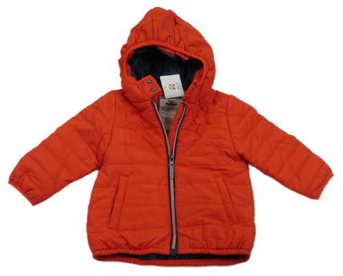Nové - Červená prošívaná šusťáková zateplená bunda s kapucí Topomini