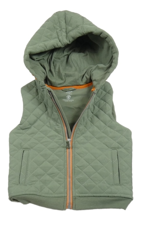 Khaki šusťáková prošívaná zateplená vesta s teplákovou kapucí F&F