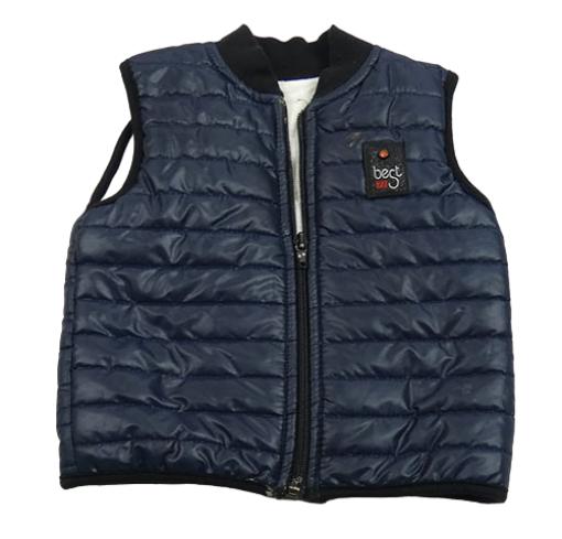 Tmavomodrá prošívaná šusťáková zateplená vesta s nášivkou