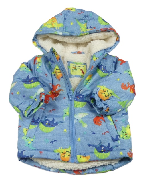 Modrá melírovaná prošívaná šusťáková zimní bunda s dinosaury a kapucí St. Bernard