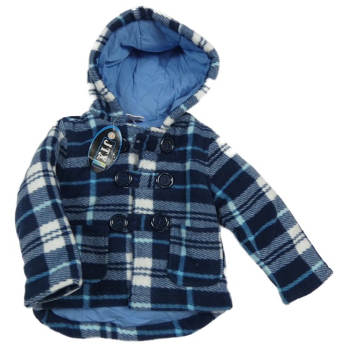 Nové - tmavomodro-modro-bílý kostkovaný fleecový zateplený kabátek s kapucí