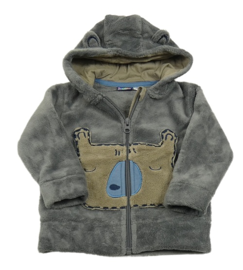 Tmavošedá plyšová bunda s medvídkem a kapucí s oušky lupilu