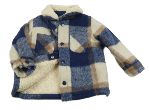 Tmavomodro-béžovo-hnědá kostkovaná zateplená košilová bunda F&F