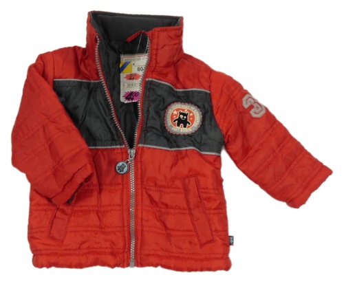 Nové - Červeno-šedá šusťáková zimní bunda s příšerkou a kapucí