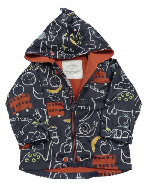 Tmavomodrá šusťáková jarní bunda s obrázky a kapucí George