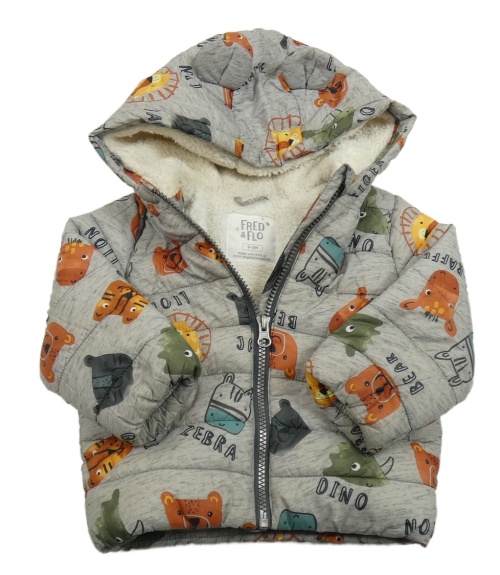 Šedá melírovaná šusťáková zimní bunda se zvířaty a kapucí F&F