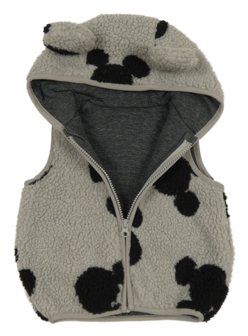 Šedo-černá huňatá podšitá vesta s Mickeym a kapucí George