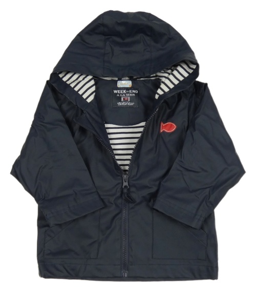 Tmavomodrá nepromokavá jarní bunda s rybou a kapucí